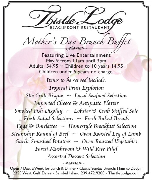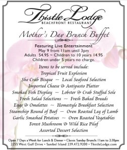 Bring Mom to historic Thistle Lodge Beachfront Restaurant and join us on Sunday, May 9 from 11a – 3p for our Mother’s Day Buffet.