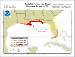 In a technical report released July 2, NOAA reports that the probability of oil impacting the destination is less than 1 percent and that the probability of oiling for much of the west coast of Florida is 20 percent or less. It further states that any oil reaching the area would have spent considerable time degrading and dispersing and would be in the form of scattered tar balls and not a large surface slick of oil.