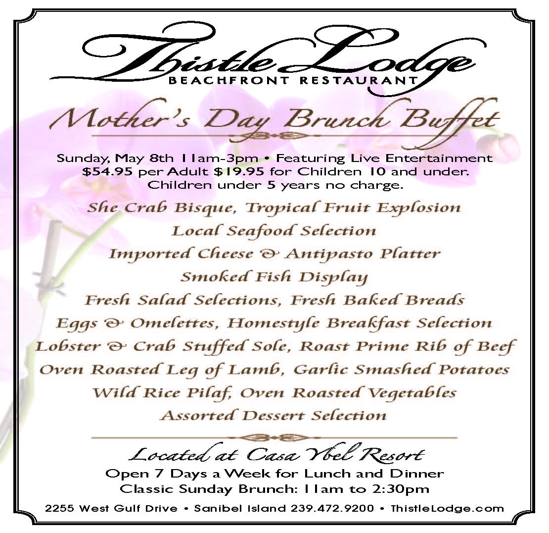 Join us at the Historic Thistle Lodge at Casa Ybel Resort on Sanibel Island for Mother’s Day Brunch! Beachfront dining and a special menu of exquisitely prepared food is guaranteed to make your holiday one you will always remember.