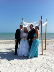 Sanibel resident and owner of Weddings by the Sea, Patricia Slater, conducted the ceremony uniting the couple. The very personal insights of Slater’s service included the couple’s love of the island and of finding that special junonia discovered on the beach at Sanibel Moorings, where the bride’s parents have owned their home-away-from-home since 1985.
